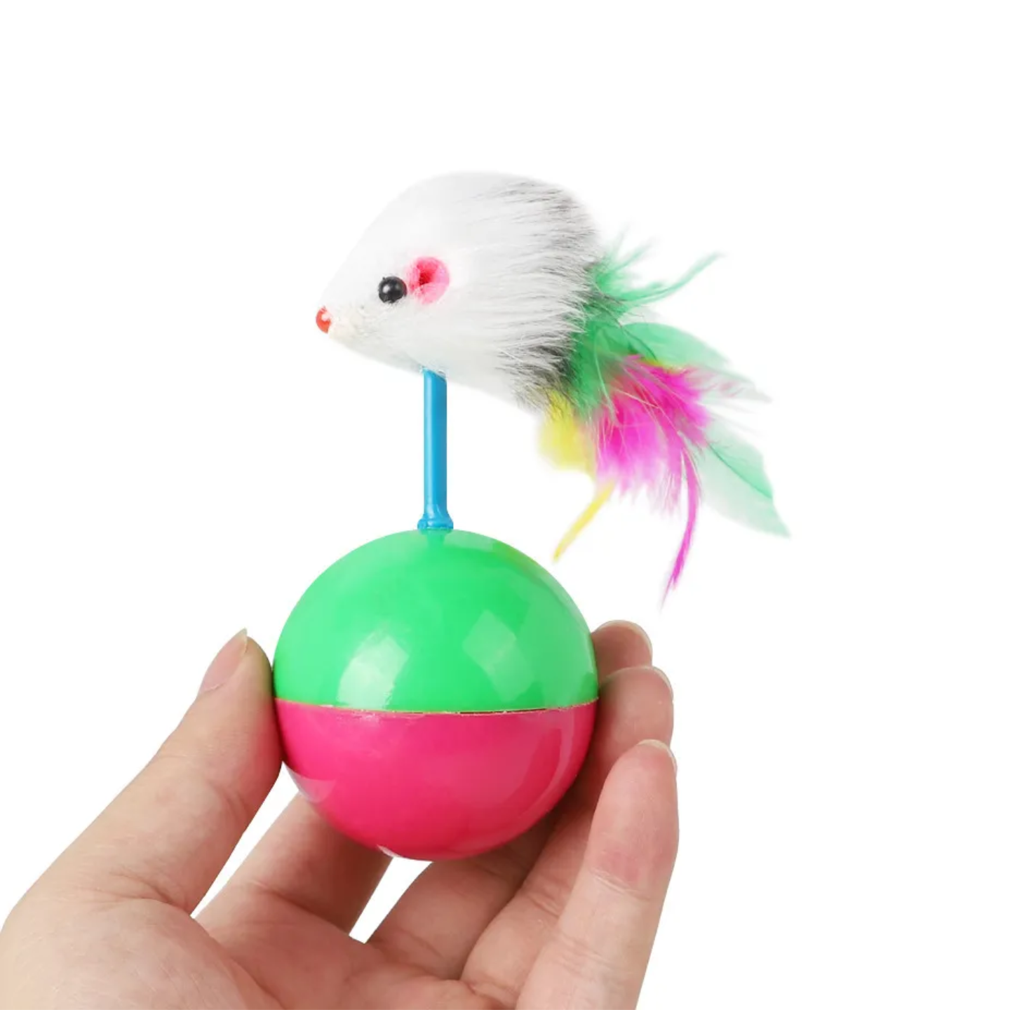- Design: Features a mouse with feathers attached to a weighted, self-balancing ball base.