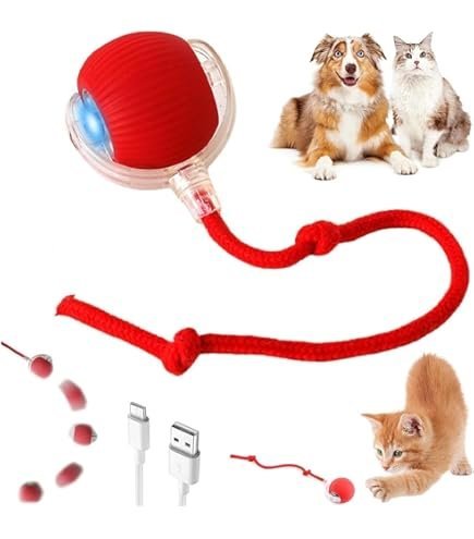 USB Rechargeable Cat Toy Ball with Rope is a fun and interactive toy designed to keep your pets active and entertained. This smart toy features a rolling ball with a rope tail that moves and attracts your pet’s attention, encouraging them to chase, play, and exercise.